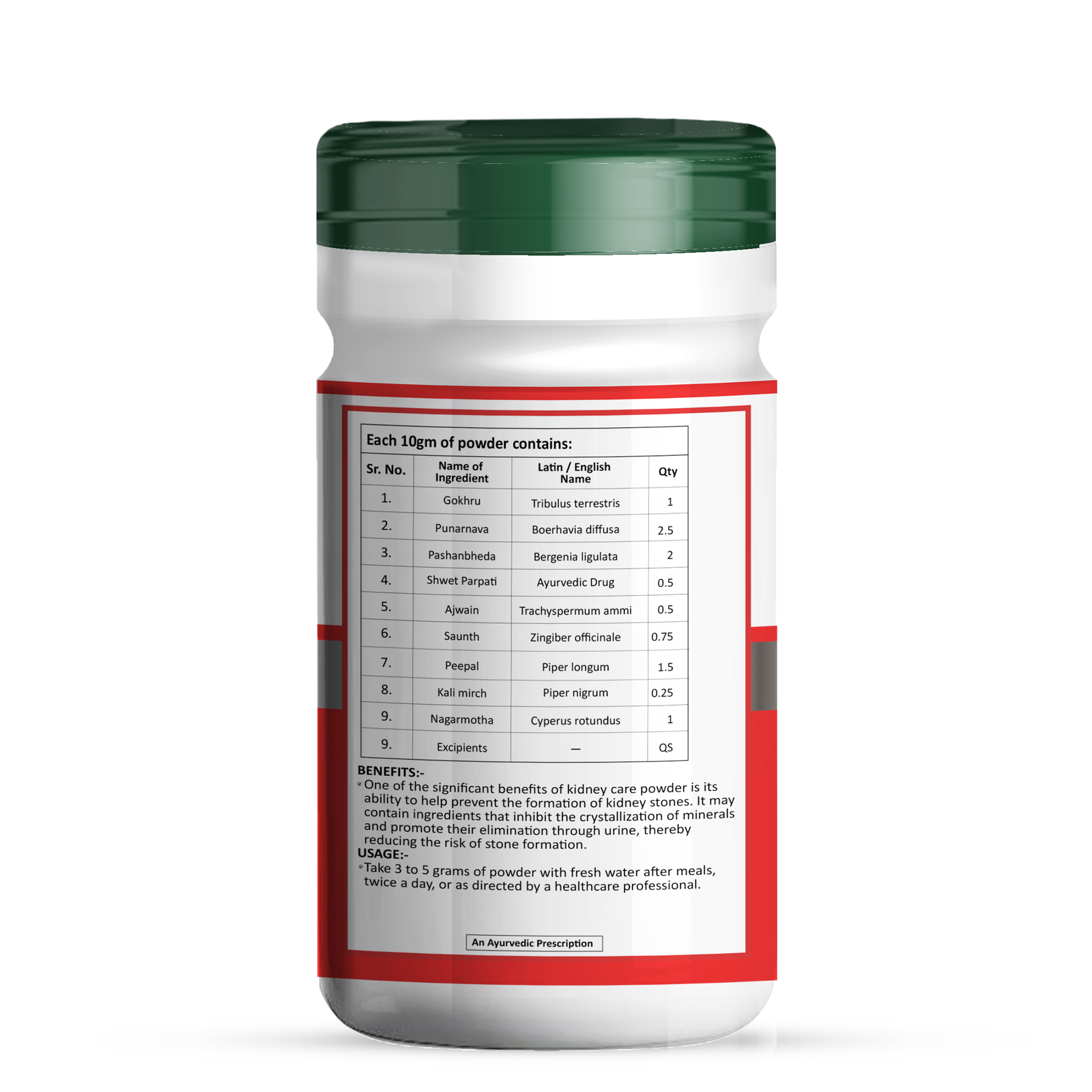 - 100% Natural Ingredients: The powder contains Ayurvedic herbs known for their kidney-supporting properties.